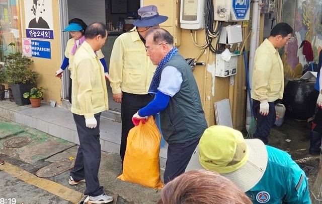 [위키트리 광주전남취재본부 노해섭 기자]기록적인 폭우로 큰 피해를 입은 함평군 함평읍에 더불어민주당 이개호 의원과 주요 당직자 30여 명이 수해 복구 봉사에 나섰다.