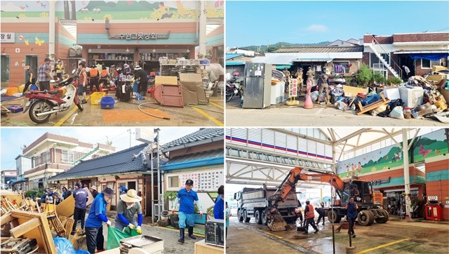 군 공무원, 경찰, 군 장병에 더해 의용소방대, 적십자봉사회, 새마을회 등 다양한 민간단체와 삼성전자, LG전자 등 기업, 관내 건설업체까지 총 400여 명이 복구 현장에 투입됐다. 이들은 창궐한 토사 제거와 침수 주택·상가 정리에 밤낮없이 힘을 쏟고 있다.