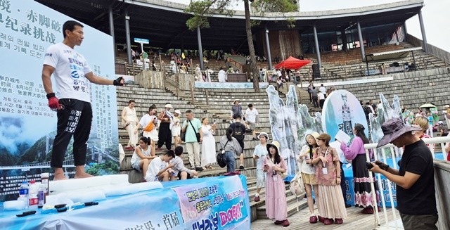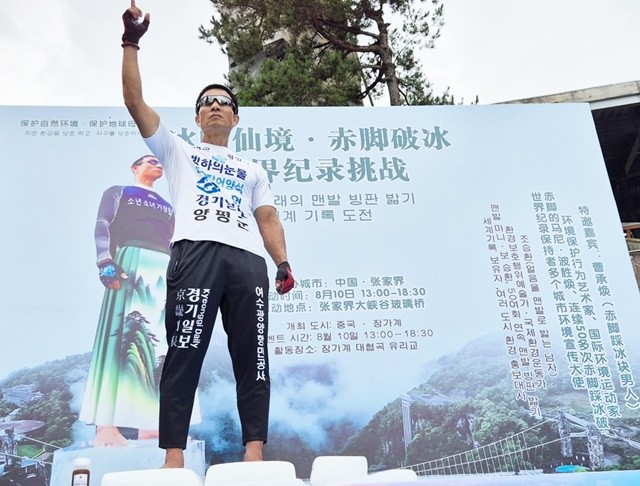 [위키트리 광주전남취재본부 노해섭 기자]국제 환경운동가이자 고흥군 홍보대사인 조승환 씨가 중국 장자제에서 ‘얼음 위 맨발 오래 서있기’ 세계기록을 경신했다.