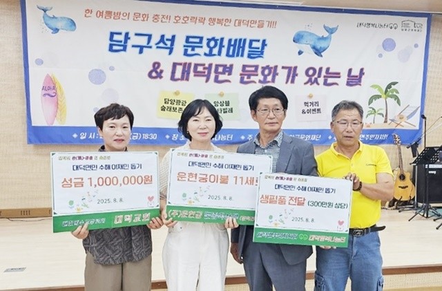 행사장에서는 수해 이재민을 위한 따뜻한 기부도 이어졌다. 대덕면주민자치회는 300만 원 상당의 생필품을, 대덕교회는 100만 원의 의연금을, 운현궁 문종옥 상무는 500만 원 상당의 이불을 각각 기탁해 나눔의 의미를 더했다.