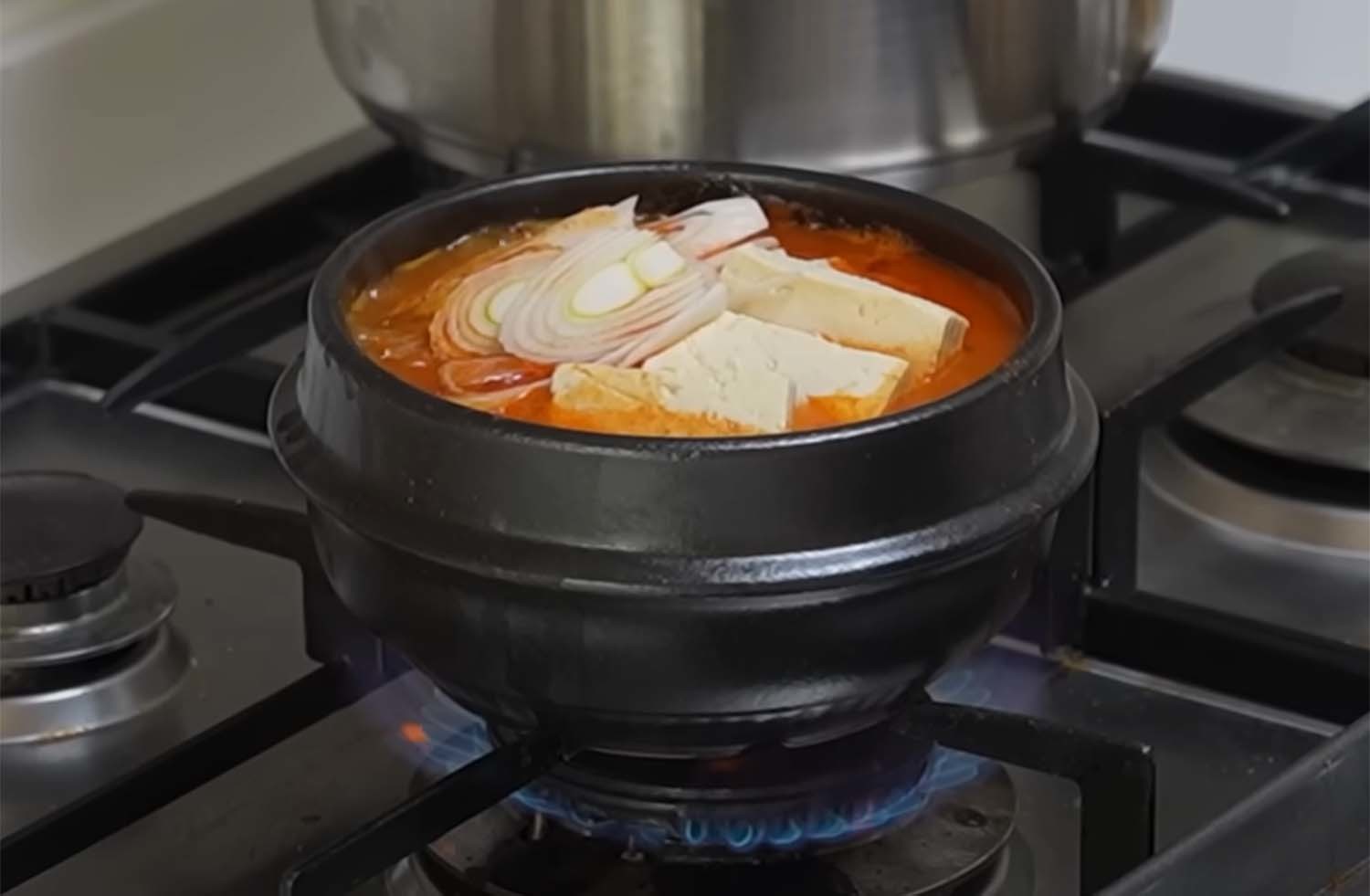 손질 방법도 구체적으로 안내했다. 양파는 1cm에서 1.5cm 두께로 듬성듬성 썰라고 했다. 대파는 어슷하게 1cm 두께로 썬다. 너무 얇으면 형태가 안 나온다고 했다. 돼지고기는 너무 얇게 썰지 말고 덩어리 있게 썰어 쪼그라들어도 큼직하게 보이게 하라고 강조했다. 김치는 5cm에서 7cm 크기로 큼직하게 썬다. 김치국물은 버리지 말고 꼭 사용하라고 했다. 꼬다리 부분도 국물이 우러나올 수 있게 함께 끓이라고 팁을 줬다. 멸치 육수는 농축액을 1 대 20 비율로 희석해 사용했다.