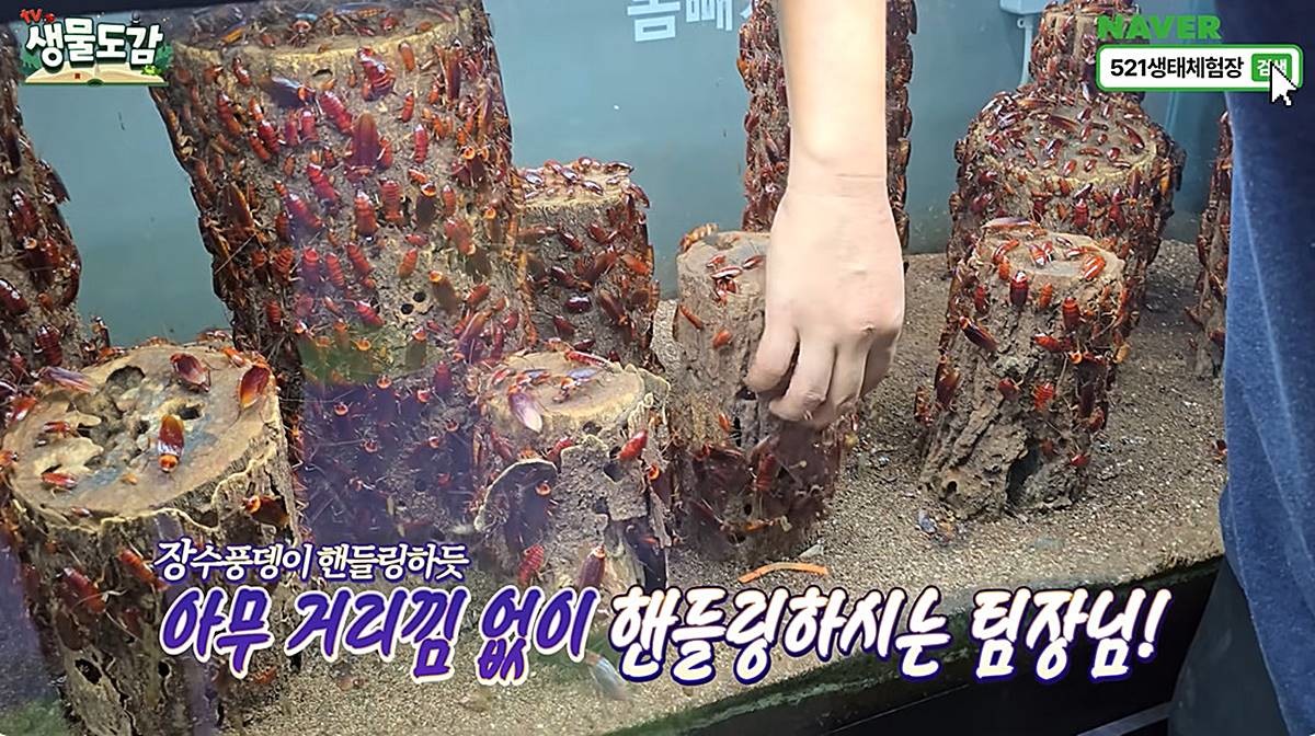 관계자는 “바퀴벌레를 소량으로 보면 혐오스럽지만, 대량으로 전시하면 오히려 충격을 넘어 감각이 무뎌진다”고 전했다. 그러면서 “사람들은 바퀴벌레가 어디서든 번식한다고 생각하지만 사실상 대량 증식은 기술이 필요한 일”이라고 강조했다. 급기야 그는 바퀴벌레 전시장 안에 손을 직접 넣어 곤충을 만지기도 했는데, 유튜버는 이를 거부하며 손사래를 치는 모습을 보였다.