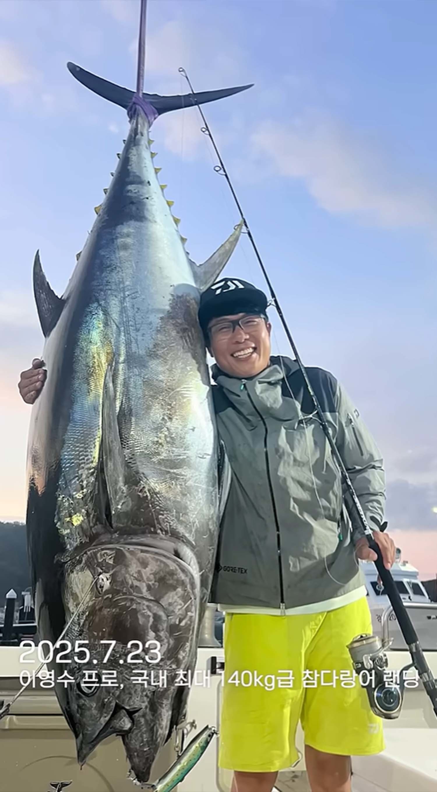한국의 한 전문 낚시인이 국내 낚시 사상 최초로 140kg짜리 참다랑어를 낚는 데 성공했다.