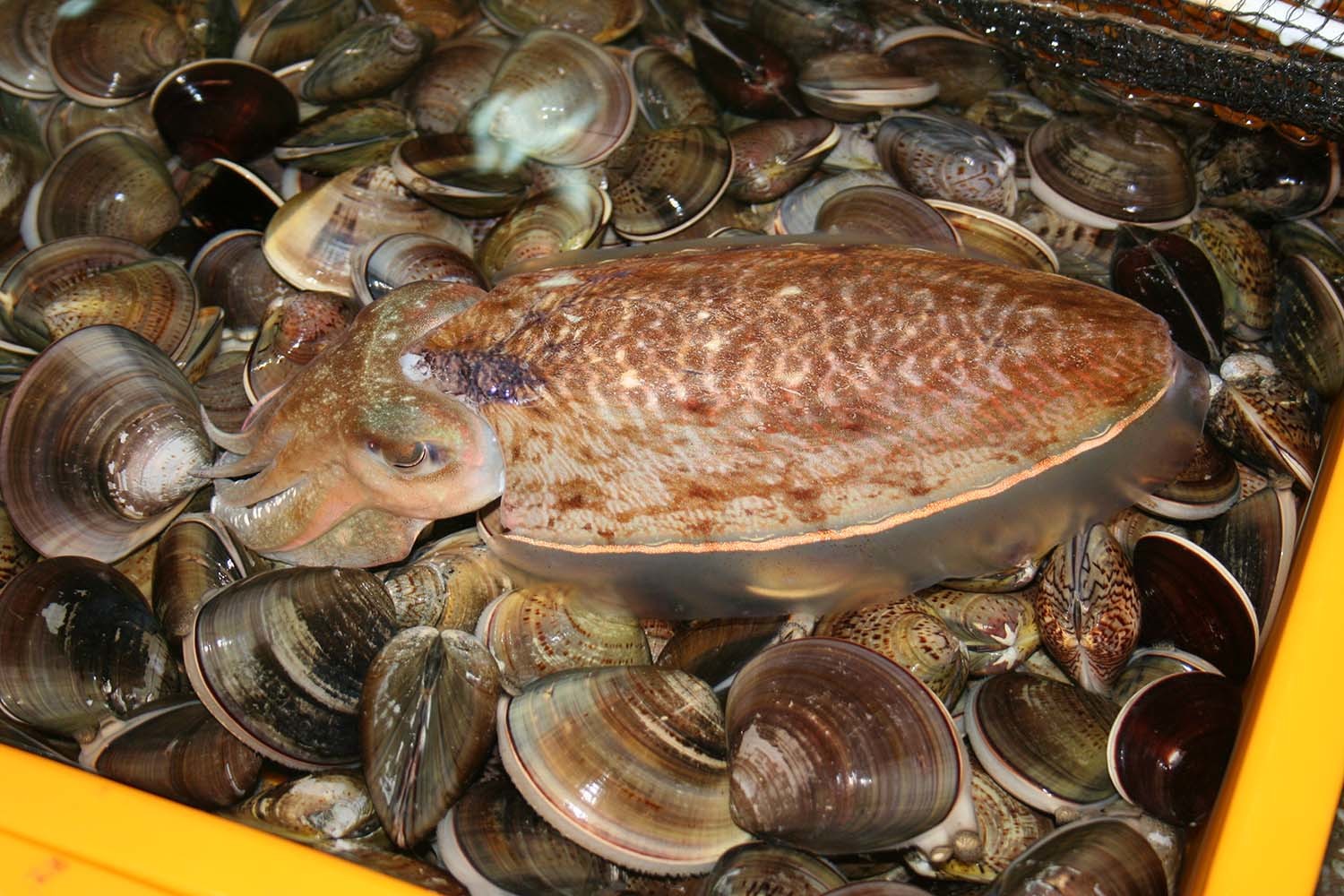 갑오징어는 연체동물 두족강에 속한다. 갑옷 같은 뼈가 있어 갑옷 갑자를 따 갑오징어라는 이름이 붙었다. 식용으로 인기가 높다. 일반 오징어에 비해 살이 두껍고 단맛이 강해 회로 먹거나 구이, 찜 등 다양한 요리로 활용된다. 갑오징어 안에 들어있는 먹물은 파스타나 리조또 요리에 사용돼 독특한 검은색과 진한 바다 풍미를 더한다.