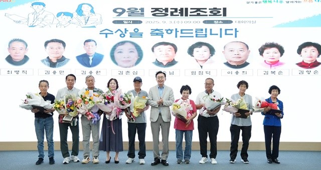 3일 나주시에 따르면 대회의실에서 진행한 정례조회에 180여 명의 간부 공무원과 직원이 참석한 가운데 시정발전 유공 표창과 ‘2025 나주영산강축제’ 설명을 진행했다.