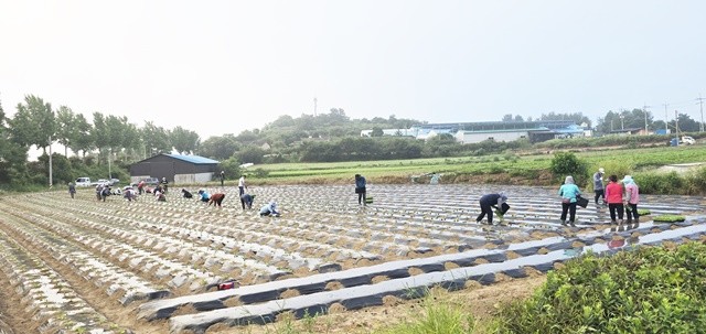 함평군은 8일 “(사)한국후계농업경영인 함평군연합회(회장 심재식)와 (사)한국여성농업인 함평군연합회(회장 이은정)는 지난달 30일 대동면 소재 750평 규모의 밭에서 배추 정식 작업을 실시했다”고 밝혔다.