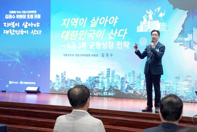 김경수 위원장은 ‘지역이 살아야 대한민국이 산다 – 5극3특 균형성장 전략 중심으로’라는 주제로 국가 차원의 균형성장 정책 방향을 설명하고, 지역민들과 심도 있는 대화를 나눴다.