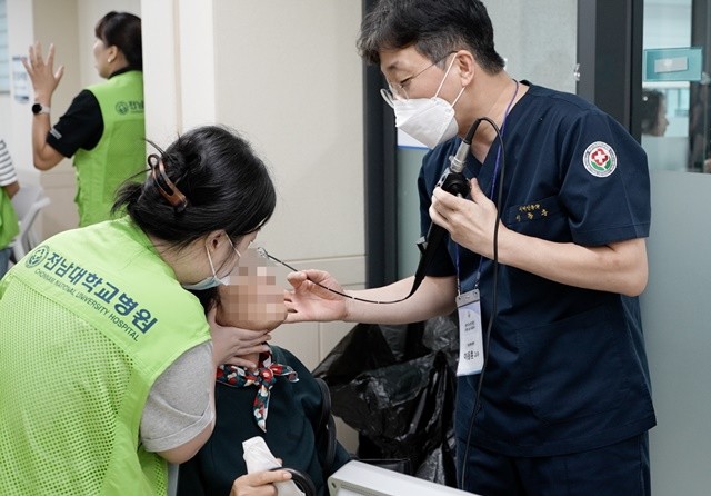 이번 봉사는 지산1·2동, 산수1·2동의 거점인 통합건강2센터에서 의료 취약계층을 대상으로 진행됐다. 전남대병원 의료진 30여 명은 내과, 이비인후과, 재활의학과, 치과 등 진료를 비롯해 혈압‧혈당, 혈액, 심전도, 골밀도 등 검진, 만성 질환 관리를 위한 건강상담 등의 봉사활동을 했다.