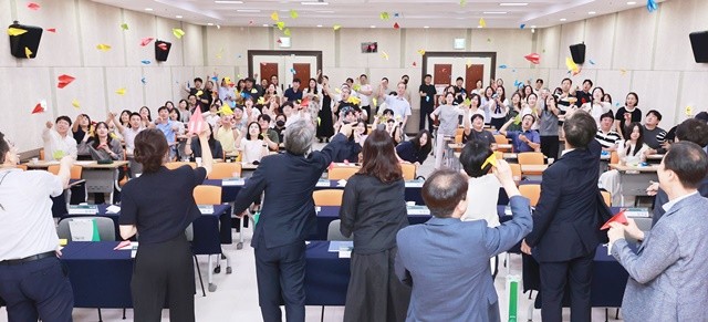 행사의 마지막은 ‘신뢰 ON, 변화 NOW, 혁신 UP’ 슬로건이 적힌 종이비행기를 전 직원이 함께 날리는 퍼포먼스로 마무리됐다.