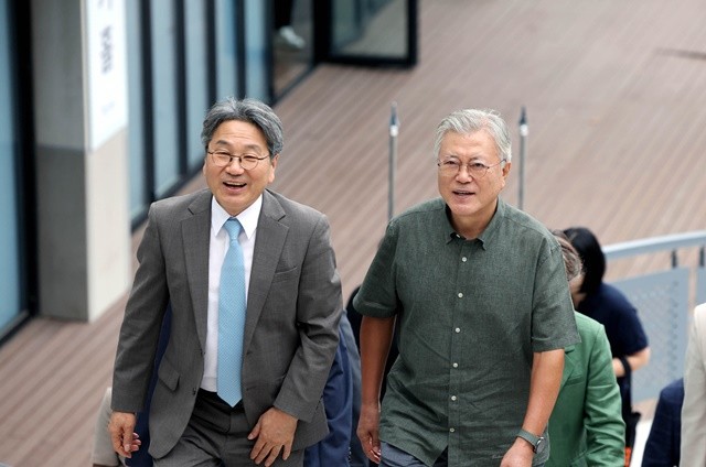 [위키트리 광주전남취재본부 노해섭 기자]12일 문재인 전 대통령과 김정숙 여사가 광주 북구 용봉동 비엔날레 전시관을 찾았다.