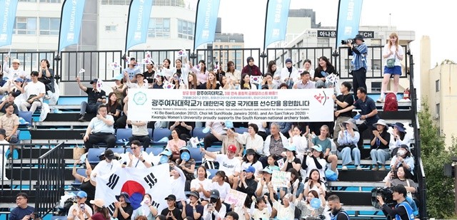 [위키트리 광주전남취재본부 노해섭 기자] 광주여자대학교는 12일 ‘2025 세계양궁선수권대회’ 여자 개인전에서 교직원과 재학생 50여 명이 함께 대한민국 대표 선수들을 응원하며 열띤 현장 응원전을 펼쳤다.