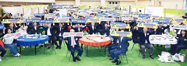 기원 퍼포먼스가 눈길을 끌었다. 청년친화도시 지정과 관련, 구복규 군수가 자발적으로 나섰다.