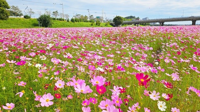 이번 꽃단지는 둔치, 들섬, 정원으로 이어진다. 둔치에는 분홍 코스모스, 들섬에는 10만㎡ 규모의 대규모 코스모스가 핀다. 정원 입구에는 황화 코스모스와 옐로우 코스모스가 방문객을 맞이한다.