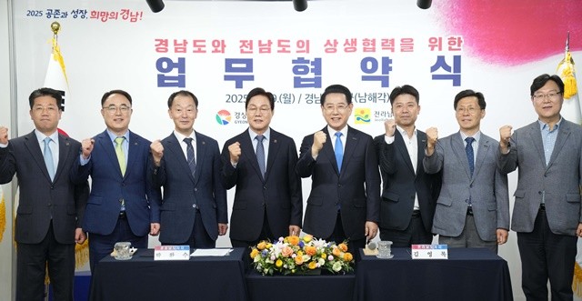 [위키트리 광주전남취재본부 노해섭 기자]전라남도와 경상남도가 29일 남해대교 남해각에서 ‘상생협력 업무협약’을 체결했다.