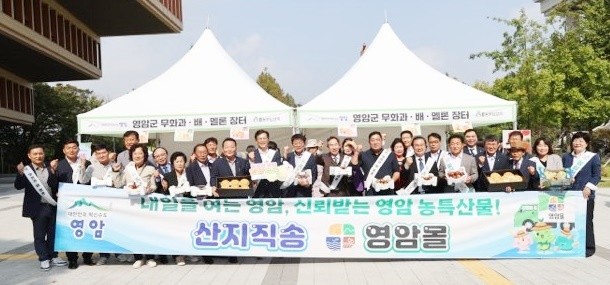 [위키트리 광주전남취재본부 노해섭 기자]영암군(군수 우승희)이 10/1일 국회 소통관 앞마당에서 서삼석 국회의원 주최로 농협중앙회 영암군지부, 영암군농협조합공동사업법인과 ‘2025 국회 영암 무화과·배·멜론 직거래행사’를 개최했다.