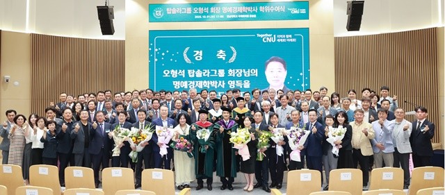 [위키트리 광주전남취재본부 노해섭 기자]전남대학교(총장 이근배)는 신재생에너지 산업을 선도하고 사회공헌에 앞장서 온 오형석 ㈜탑솔라 회장에게 명예경제학 박사 학위를 수여했다.