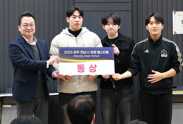 이 치열한 지성의 격전지에서, 남부대학교 대표팀(김민장, 이민영, 김주상)은 동상이라는 값진 성과를 거뒀다. 특히 남부대팀은 상대를 이기는 데만 몰두하는 공격적인 토론 방식에서 벗어나, 서로의 의견을 경청하고 함께 더 나은 해결책을 모색하는 ‘협력적 토론’ 자세를 선보여 심사단과 청중평가단으로부터 뜨거운 박수를 받았다.