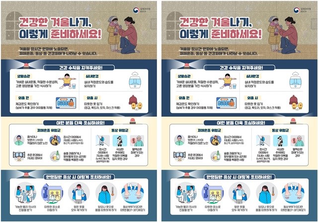 군은 안전한 겨울나기를 위해 군민들에게 ▲가벼운 실내운동과 균형잡힌 영양 섭취, ▲실내 적정 온도와 습도 유지, ▲외출 전 기온 및 체감온도 확인, ▲외출 시 따뜻한 옷(장갑, 목도리 등) 입기 등 한랭질환 예방 건강수칙 준수를 당부했다.