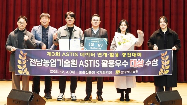 [위키트리 광주전남취재본부 노해섭 기자]전남도농업기술원(원장 김행란)은 농촌진흥청이 주관한 ‘제3회 ASTIS 활용 경진대회’에서 대상을 수상했다고 8일 밝혔다.