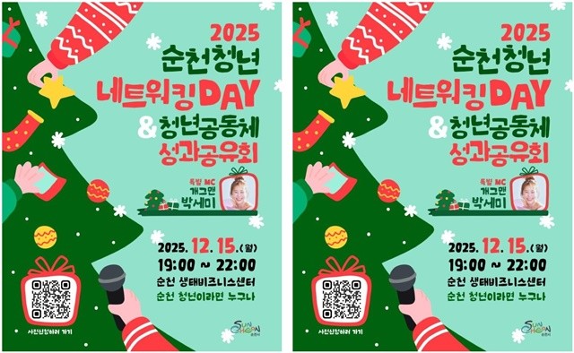 [위키트리 광주전남취재본부 노해섭 기자]순천시는 오는 15일 생태비즈니스센터 컨퍼런스홀에서 ‘2025년 청년공동체 활동 성과공유회’를 개최한다고 밝혔다. 이번 성과공유회는 한 해 동안 추진된 청년공동체 활동 성과를 공유하고, 공동체 간 교류와 협력을 확대하기 위해 마련됐다.