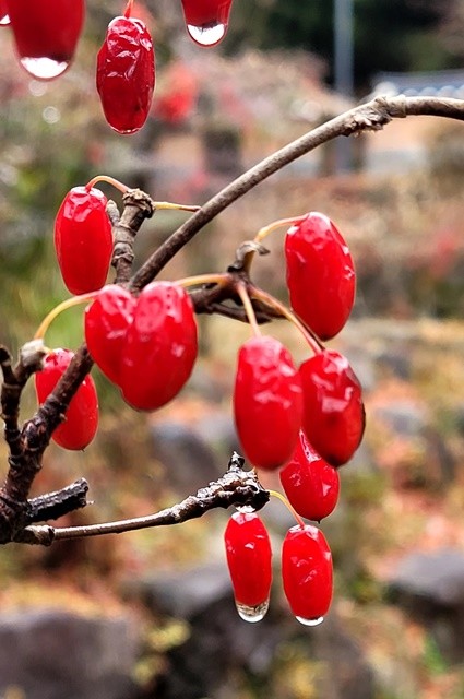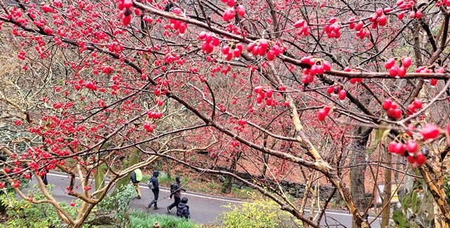 [위키트리 광주전남취재본부 노해섭 기자]겨울비가 내린 휴일인 14일, 광주시 동구 무등산 증심사 입구 일대에서 붉게 익은 산수유 열매가 등산객들의 눈길을 사로잡았다.