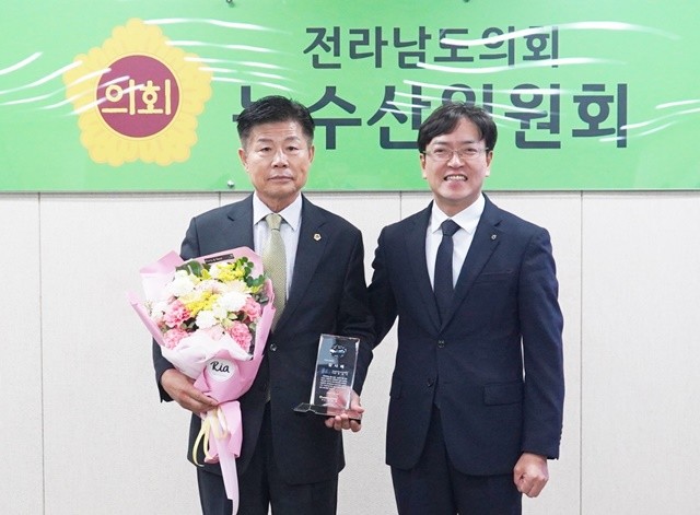 [위키트리 광주전남취재본부 노해섭 기자]전남도의회 농수산위원회 김문수 위원장(더불어민주당·신안1)은 지난 9일, 지역 농업 발전을 위한 정책 추진과 농업인 권익 증진에 기여한 공로를 인정받아 농협중앙회로부터 감사패를 수상했다.