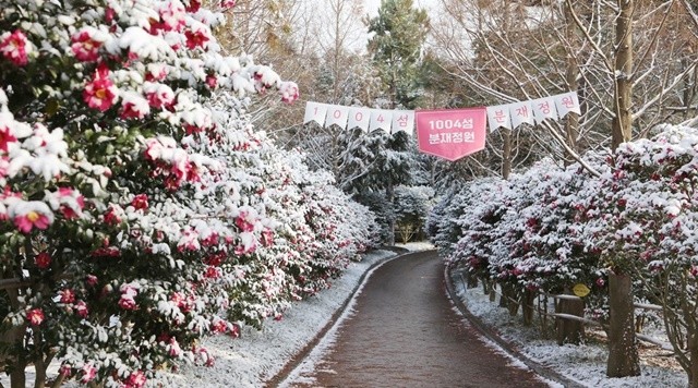 3km 애기동백 숲길에 2만 그루가 이미 활짝 피어 정원을 붉게 물들이고 있으며, 축제 기간에는 약 4천만 송이의 애기동백꽃이 절정을 이룰 전망이다. 관람객들은 한겨울에도 화사한 꽃길을 거닐며 특별한 자연경관을 만끽할 수 있다.
