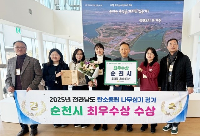 [위키트리 광주전남취재본부 노해섭 기자]순천시는 지난 12일 해남 산이정원에서 열린 ‘2025년 숲속의 전남 만들기 워크숍’에서 전라남도 주관 「2025년 나무심기 평가」에서 최우수상을 수상했다고 밝혔다.