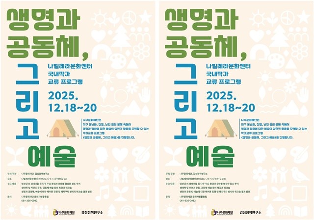 나주문화재단은 오는 12월 18일부터 20일까지 3일간 나빌레라문화센터에서 ‘생명과 평화’를 주제로 한 작가교류 프로그램을 개최한다고 17일 밝혔다.