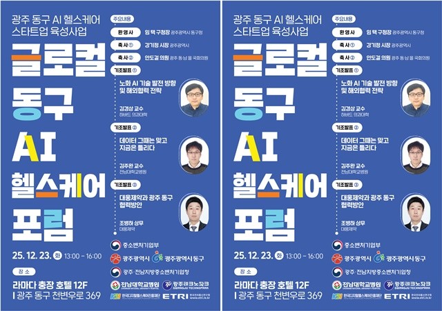 [위키트리 광주전남취재본부 노해섭 기자]광주시 동구는 오는 23일 라마다플라자 광주충장호텔에서 ‘글로컬 동구 인공지능(AI) 헬스케어 포럼’을 개최하고, AI 기반 헬스케어 산업 생태계 조성의 비전과 전략을 논의할 예정이라고 밝혔다.