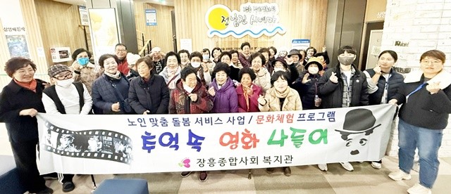 양은희 장흥종합사회복지관장은 “이번 영화 나들이를 통해 어르신들이 일상에서 벗어나 추억을 되새기고 정서적으로 위로받는 시간이 되었기를 바란다”며 “앞으로도 어르신들의 삶의 질 향상을 위한 다양한 문화·여가 프로그램을 지속적으로 제공하겠다”고 전했다.