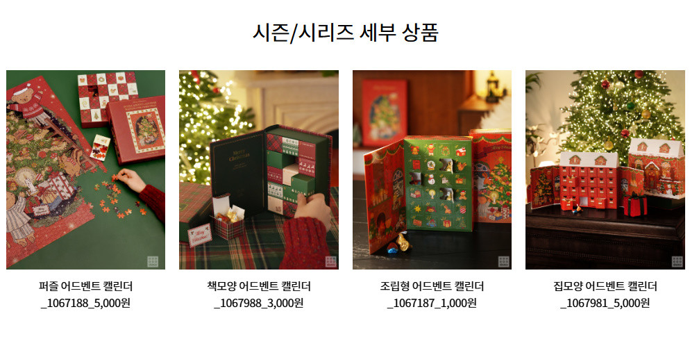 지난해 품절대란을 일으켰던 '어드벤트 캘린더'는 한층 다채로워진 크리스마스앳홈 라인으로 지난달 12일부터 본격 출시됐다. 대부분 3000~5000원대로 합리적인 가격을 자랑한다.