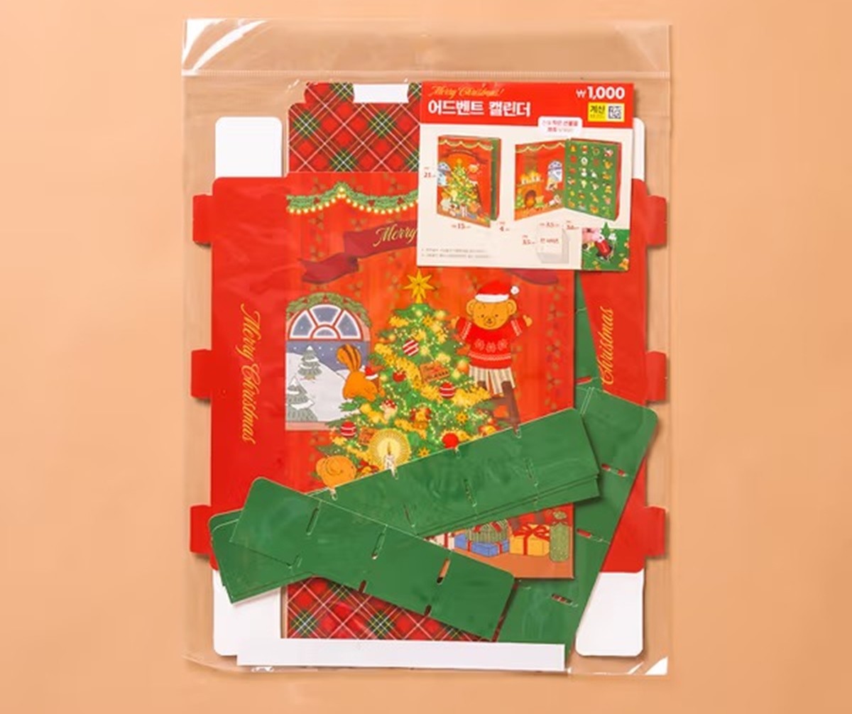 어드벤트 캘린더는 12월 1일부터 크리스마스이브까지 매일 하나씩 문을 여는 서양의 전통 달력이다. 다이소 제품은 24개 칸으로 이뤄져 있으며, 동물들이 트리를 장식하는 귀엽고 세밀한 그림이 특징이다.