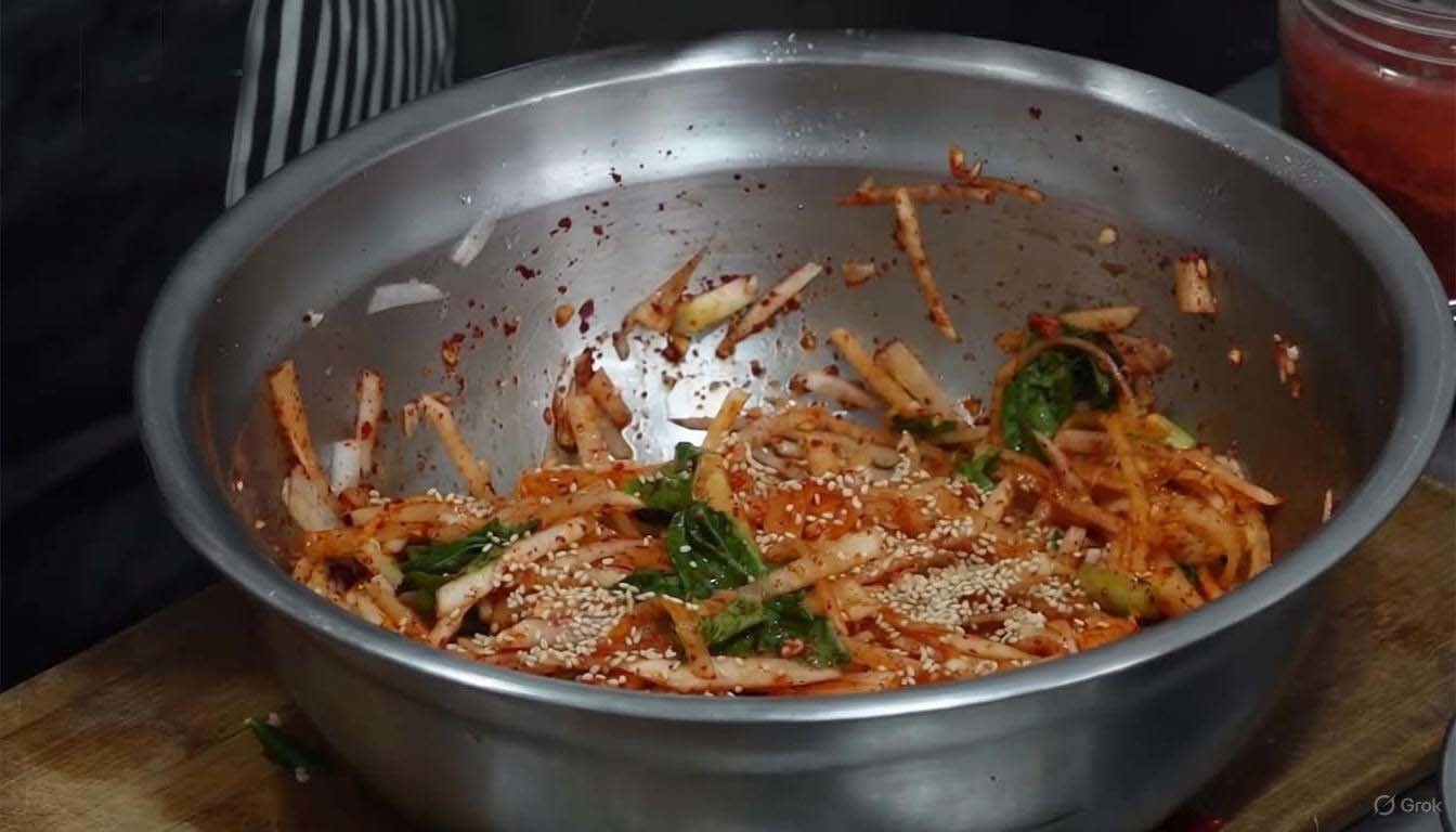 할머니는 무생채를 버무리며 "고춧가루를 많이 넣으면 질척해진다"며 적당량을 넣어야 한다고 강조했다. 출연자가 식초를 넣느냐고 묻자 할머니는 "안 들어갔다. 안 쓴다"고 했다.