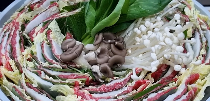 밀푀유나베는 한 냄비로 모두가 함께 먹을 수 있는 음식이다. 접시에 나눠 담지 않아도 되고, 식탁 위에서 끓이기만 하면 되니 주방에 오래 머물 필요도 없다. 무엇보다 냄비를 여는 순간 보이는 단정한 단면이 시선을 사로잡는다. 정성을 들인 것처럼 보이지만 실제로는 준비 시간이 짧아, 손님을 맞이하는 사람의 부담을 크게 줄여준다.