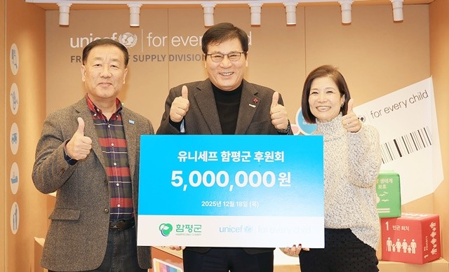 함평군은 유니세프 함평군후원회(회장 이재갑)가 지난 18일, 유니세프한국위원회에 지구촌 어린이를 위한 기금 500만 원을 전달했다고 21일 밝혔다. 이로써 후원회가 2008년 결성 이후 18년간 이어온 누적 기부액은 총 1억 6,000만 원에 달한다.
