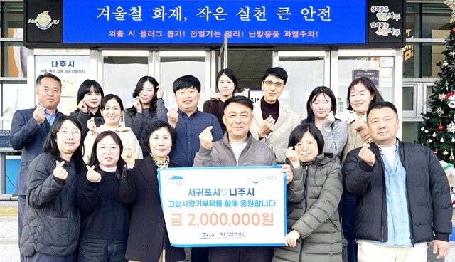 [위키트리 광주전남취재본부 노해섭 기자]전남 나주시(시장 윤병태)는 지난 17일 나주시 세무과와 제주특별자치도 서귀포시 세무과 직원들이 고향사랑기부금 상호 교차 기부에 동참했다고 밝혔다.