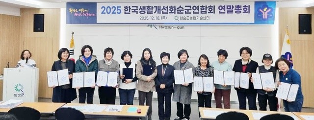 [위키트리 광주전남취재본부 노해섭 기자]화순군(군수 구복규)은 지난 18일 농업기술센터 세미나실에서 한국생활개선화순군연합회(회장 김점순)가 회원 46명이 참석한 가운데, 올 한 해를 마무리하는 연말 총회를 개최했다고 밝혔다.