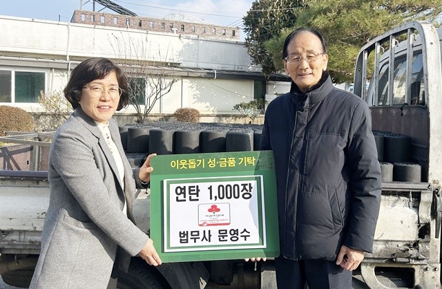 수북면 출신인 문 법무사는 올해로 22년째 매년 관내 취약계층을 위한 연탄 기탁을 이어오며 고향에 대한 나눔을 실천하고 있다.