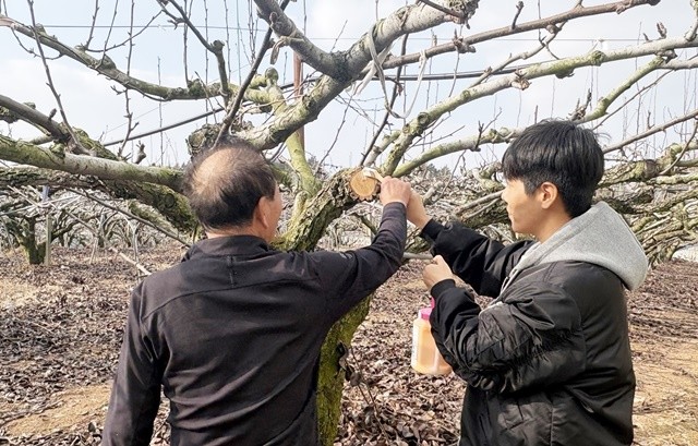 이번 겨울철 예방 사업에는 총 3억 3천5백만 원의 사업비를 투입해 도포제 1만 2982개를 배부했으며 과수 전정 시 병원균 밀도를 사전에 낮춰 내년도 감염 가능성을 최소화하는 데 중점을 두고 있다.
