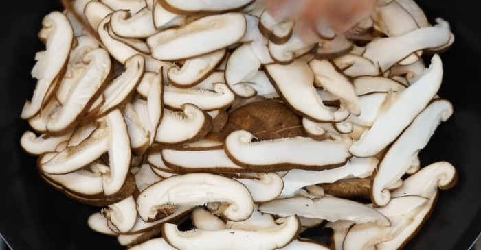 첫 단계는 손질이다. 표고버섯은 씻지 않는 것이 좋다. 물에 씻으면 수분이 겉에만 남아 프라이팬에서 증발해버리고, 정작 버섯 속 수분은 빠져나오지 않는다. 마른 키친타월로 표면만 가볍게 닦아낸다. 써는 방향도 중요하다. 결을 따라 길게 썰면 볶는 동안 수분이 천천히 나오고, 식감도 살아난다. 너무 얇게 썰면 수분이 한꺼번에 빠져나와 타기 쉽다.