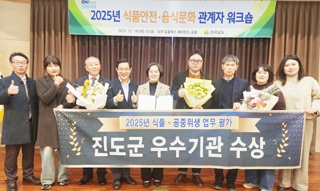 [위키트리 광주전남취재본부 노해섭 기자]진도군이 ‘2025년 식품, 공중위생 관리 평가’에서 우수기관으로 선정되며, 식품, 공중위생 관리 분야에서 우수한 성과를 인정받았다.