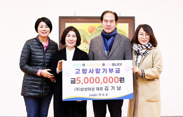 [위키트리 광주전남취재본부 노해섭 기자]김기남 ㈜상상이상 대표가 고향사랑기부금 500만 원을 진도군에 전달하며, 지난해에 이어 2년 연속 고향사랑기부에 동참했다.
