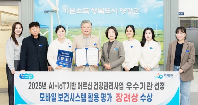 [위키트리 광주전남취재본부 노해섭 기자]영광군은 12월 18일 한국사회보장정보원 주관으로 서울PJ호텔에서 열린 2025년 AI-IoT기반 어르신 건강관리사업 모바일 보건소 시스템 활용 평가 성과대회에서 장려상을 수상하며 2년 연속 우수기관으로 선정되었다.