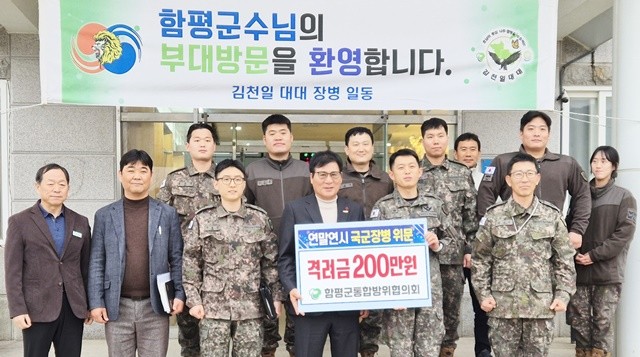 함평군은 지난 23일, 함평군수가 의장을 맡고 있는 함평군통합방위협의회 주관으로 육군 제8332부대 3대대를 방문해 위문금을 전달했다고 24일 밝혔다.