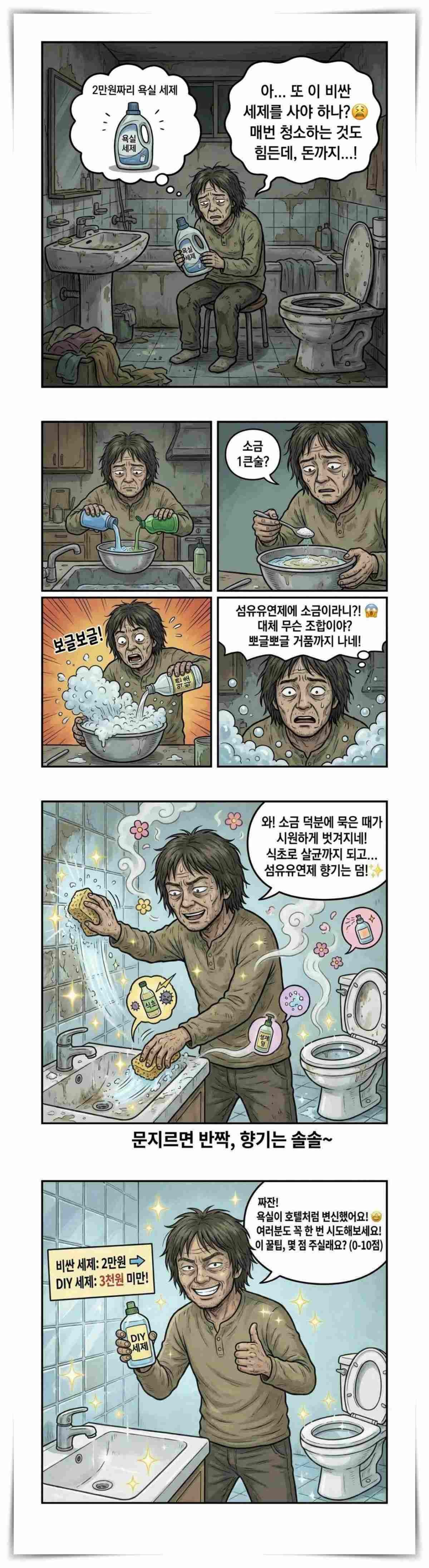 욕실 청소를 할 때마다 전용 세제를 새로 사는 것이 부담스럽다면, 이미 집에 있는 재료만으로 충분히 좋은 대안을 만들 수 있다.