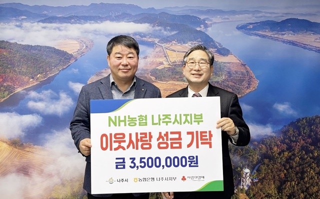 제해중 농협 나주시지부장은 “지역과 함께 성장해 온 금융기관으로서 연말을 맞아 이웃들과 따뜻한 마음을 나누고자 성금을 기탁하게 됐다”며 “앞으로도 지역사회에 실질적인 도움이 되는 나눔 활동을 지속해 나가겠다”고 말했다.