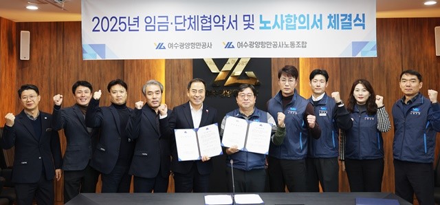 여수광양항만공사 노사는 지난 24일, 수차례의 실무 및 본교섭을 거쳐 도출한 ‘2025년 임금·단체협약서’와 ‘노사합의서’에 최종 서명했다.