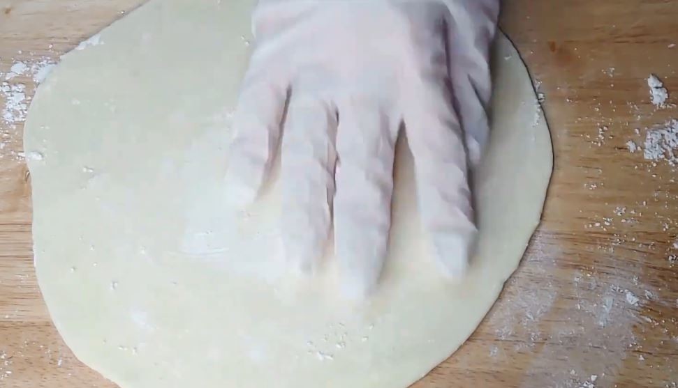 반죽을 밀 때는 한 방향으로만 밀지 않는다. 가운데에서 바깥으로, 반죽을 돌려가며 여러 방향으로 밀어야 두께가 고르게 나온다. 밀대에 힘을 주기보다 반죽 위를 스치듯 굴린다는 느낌이 좋다. 밀가루를 과하게 뿌리면 반죽이 미끄러져 얇아지는 감각을 놓치기 쉽다. 최소한만 사용한다.