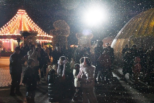 여기에 하늘에서 쏟아지는 새하얀 ‘버블 눈’까지 더해지니, 공원은 그야말로 ‘겨울 왕국’으로 변신했습니다.